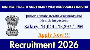 📢 SSLC ಪಾಸಾದ ಮಹಿಳೆಯರಿಗೆ ಭರ್ಜರಿ ಸರ್ಕಾರಿ ಉದ್ಯೋಗಾವಕಾಶ! District Health and Family Welfare Society ರಾಯಚೂರುನಲ್ಲಿ 20 ಜೂನಿಯರ್ ಮಹಿಳಾ ಆರೋಗ್ಯ ಸಹಾಯಕಿ ಹುದ್ದೆಗಳು …