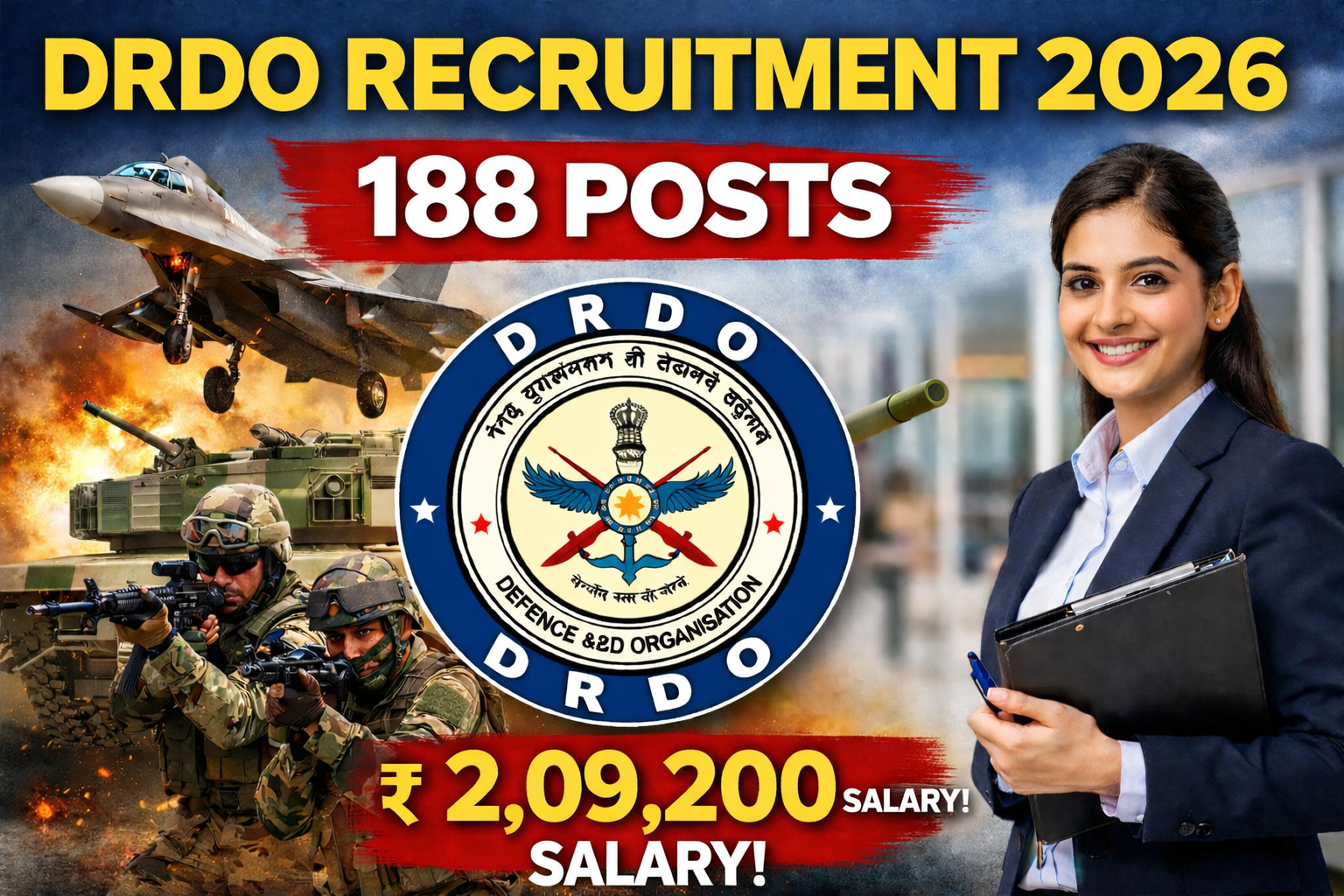 DRDO Recruitment 2026: 188 ಹುದ್ದೆಗಳ ಭರ್ಜರಿ ನೇಮಕಾತಿ – ₹2 ಲಕ್ಷ ವೇತನ! ಪದವಿ / BE / BTech ಇದ್ದರೆ ತಕ್ಷಣ ಅರ್ಜಿ ಹಾಕಿ